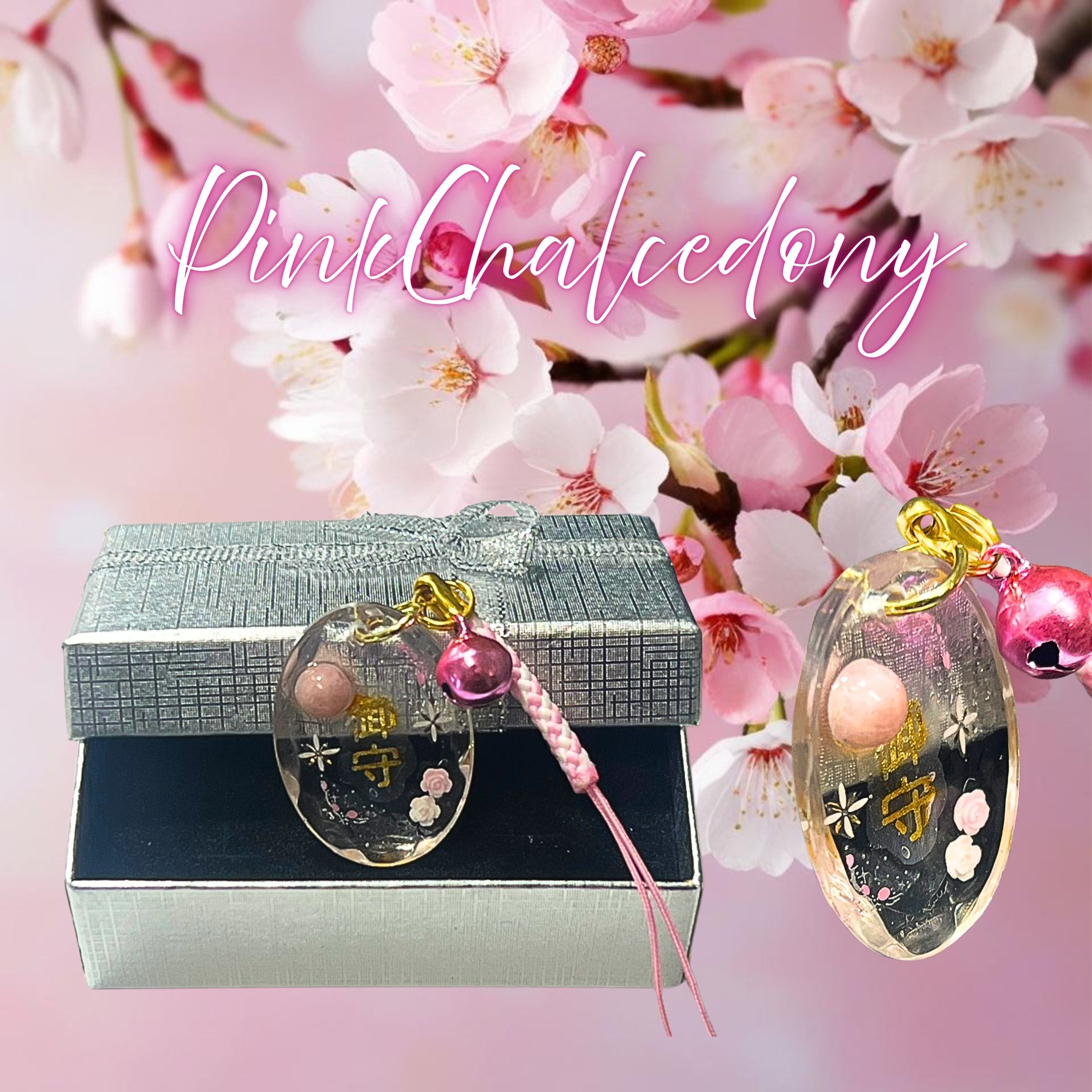 レジンお守り ピンクカルセドニー 3.3㎝×2.4㎝