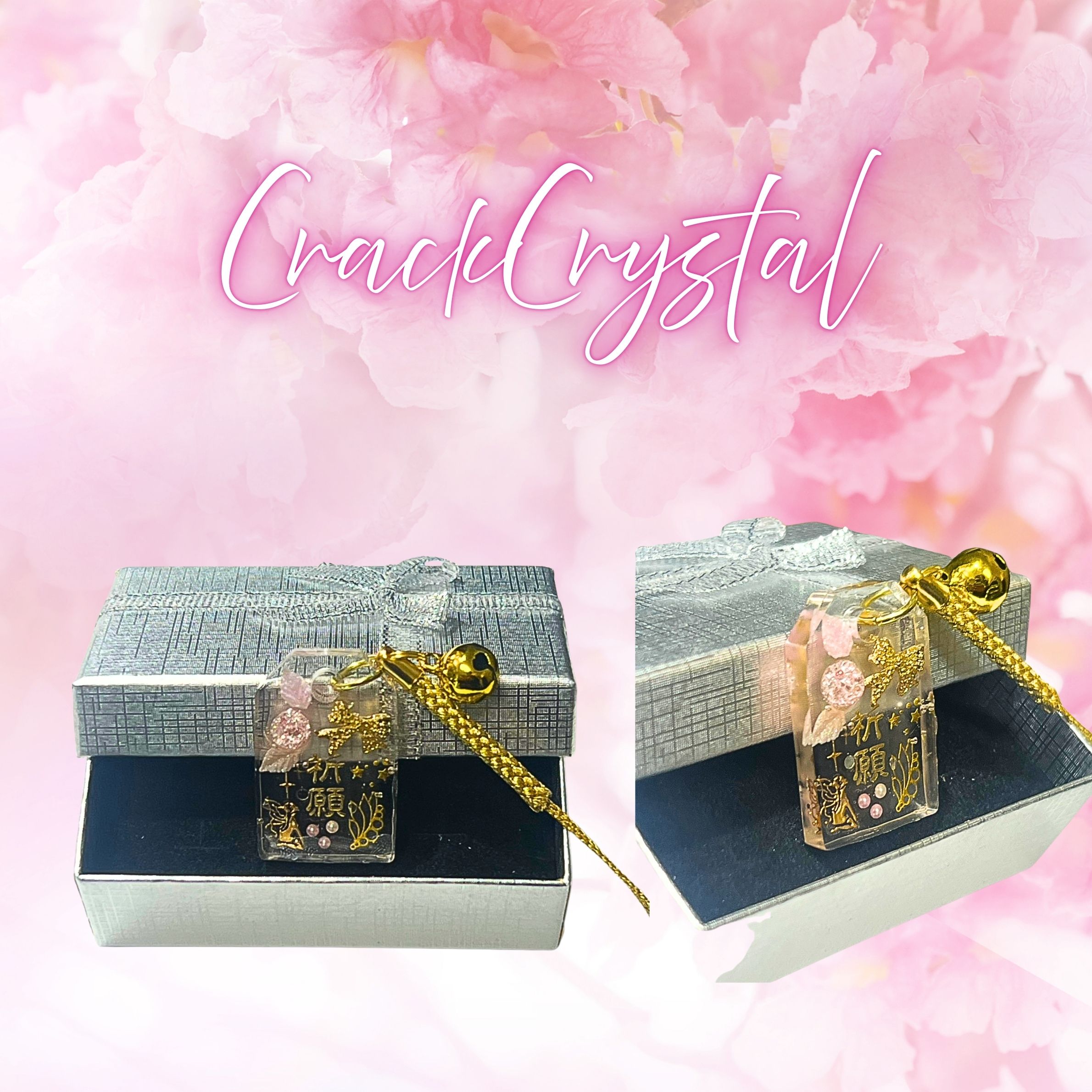 レジンお守り ピンククラック水晶 3.4㎝×2.2㎝